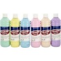 Carton de 6 flacons 500ml de gouache pastel + 10 brosses plates synthétiques n°12. 6 teintes assorties : jaune, chair, vert, bleu, rose et violet. Gouache opaque prête à l''emploi, séchage rapide, s''utilise sur presque tous les supports. Nettoyage des pinceaux et tâches à l''eau froide avant séchage. Ne contient pas de caséine.