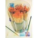 Pot de 144 pinceaux et brosses en poils synthétiques - 72 pinceaux ronds (24 n° 4 + 24 n° 8 + 24 n° 12) - 72 brosses plates (24 n°6 + 24 n° 8 + 24 n° 10). Manche en bois verni et virole en aluminium anodisé anti rouille.Poil souple et nerveux, permet un tracé d''une grande précision.Doté d''une excellente résistance, il est idéal pour l''acrylique, l''huile, mais aussi la gouache, le drawing gum...