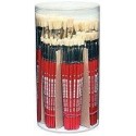 Pot de 144 brosses plates en soie de porc 24 piècesx6 tailles assorties (n° 6, 8, 10, 12, 14 et 16). Manche en bois verni et virole en aluminium anodisé anti rouille. La soie de porc est dotée d''une grande élasticité et résiste particulièrement bien à l''usure. Idéal pour l''huile et l''acrylique. Permet les travaux d''empâtement et de matières.Convient parfaitement au milieu scolaire