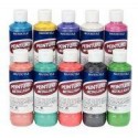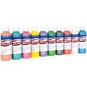 Boîte de 10 flacons de 250 ml de peinture acrylique métallique. 10 assortis : blanc, jaune, vermillo
