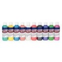 Boîte de 10 flacons de 250 ml de peinture acrylique métallique. 10 assortis : blanc, jaune, vermillon, rose, violet, bleu, vert clair, vert foncé, terre de sienne, noir. Prête à l''emploi, cette peinture satinée offre des éclats métalliques et nacrés trés inattendus sur tous types de matériaux poreux , papier, carton, toile, bois, terre cuite, plâtre, cellulose etc....Elle forme aprés séchage une pellicule indélébile et scintillante. Il n''est pas utilse de vernir.Sans solvant, non toxique.Nettoyage du matériel à l''eau savonneuse avant séchage.