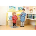 Tablier enfant modèle 6 - 8 ans bleu. D''excellente qualité, lavables et indéchirables ( bords surpiqués ). Ils sont très couvrants avec des manches longues resserrées aux poignets par des élastiques. Fermeture velcro dans le dos. Poche devant. 100% nylon. Lavage à la main. Sèche linge interdit. Dimensions : largeur x Hauteur : 50x70cm Longueur de manche : 50cm Largeur de manche avant bras : 13.5cm Largeur de manche épaule : 26cm Emmanchure : 30cm Encolure : 19cm Poche (largeur x hauteur) : 21.5 x 13.3 cm