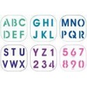 Paquet de 6 pochoirs en plastique thème alphabet & chiffres