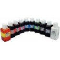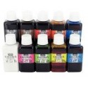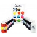Lot de 10 flacons 250 ml d''encres à dessiner PEBEO COLOREX dont 3 offerts. Blanc, noir, cyan, magenta, jaune primaire, orange, vermillon, bleu outremer, vert lumière, sépia. Encre à dessiner haut de gamme aquarellable. Couleurs concentrées transparentes et lumineuses. Permet d''apprendre les mélanges de couleurs. Supporte une dilution jusqu''à 8 fois son volume d''eau.