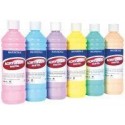 Carton de 6 flacons de 500 ml de peinture acrylique brillante, couleurs pastel assorties. Couleurs pastel assorties: jaune, chair, rose, mauve, bleu et vert.Prête à l''emploi, cette peinture forme, une fois sèche, une pellicule brillante imperméable et indélébile.Elle s''applique sur tous les supports : papier, plâtre, poterie, verre, carton... Toutes les couleurs se mélangent entre elles. Nettoyage à l''eau froide avant séchage.