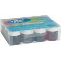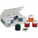 Coffret de 12 pots 50 ml de vernis vitrail à l''eau biodégradable. 12 couleurs assorties: incolore, jaune, orange, rouge, rose, violet, bleu clair, bleu foncé, vert clair, vert foncé, marron et noir. Peinture à base d''eau sans solvant. Grande résistance aux U.V. Peinture transparente aux couleurs lumineuses. Une fois sèche elle forme une pellicule brillante qui donne l''aspect d''un glaçage céramique. Prête à l''emploi. Applicable sur tous supports lisses non poreux tels que le verre, l’émail, le plastique, le plexiglas, le rhodoïd... Éviter le papier, le carton, la terre cuite, le plâtre, la cellulose. Appliquer de préférence avec des pinceaux ronds, souples, à poils polyamides. Nettoyer le matériel à l''eau froide savonneuse. Produit complètement réversible à l''eau et totalement biodégradable. Au titre du nettoyage, il ne peut donc supporter que l''époussetage, rien de plus. Pour obtenir une résistance à l''éponge humide il est indispensable de fixer la décoration avec deux couches de vernis acrylique (65051) ou mieux encore vernis à solvant (65049). Ne résiste pas à la cuisson.