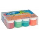 Coffret de 12 pots 50 ml de vernis céramique. 12 couleurs assorties: blanc, jaune, orange, rouge, rose, violet, bleu clair, bleu foncé, vert clair, vert foncé, marron et noir. Produit à base d''eau sans solvant (craint le gel). Prête à l''emploi à déposer au pinceau ou la brosse souple, bonne opacité. Une fois sec, le vernis forme une pellicule brillante, imperméable et indélébile. Couleurs miscibles entre elles, diluable à l''eau. Prête à l''emploi à déposer au pinceau ou la brosse souple, haut pouvoir couvrant, épaisse, opaque. S’applique sur la faïence, la céramique, le verre, la porcelaine... Nettoyer les tâches et le matériel à l''eau froide savonneuse avant séchage. Si le produit a été appliqué dans les règles (nettoyage des supports lisses au préalable) et après un séchage de 36 heures, il est possible de laver à l''eau froide avec du savon et une éponge. Ne résiste pas à l''abrasion (type grattoir d’éponge) ni à la cuisson, ni au trempage prolongé dans l''eau chaude (ne pas mettre au lave-vaisselle).