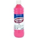 Flacon de 500 ml de peinture acrylique brillante MAJUSCULE rose. Prête à l''emploi, cette peinture forme, une fois sèche, une pellicule brillante imperméable et indélébile. Elle s''applique sur tous les supports : papier, plâtre, poterie, verre, carton… Toutes les couleurs se mélangent entre elles.Nettoyage à l''eau froide avant séchage.