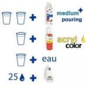 Flacon 500 ml de médium pouring. Médium fluide à mélanger avec de la peinture acrylique, de l’eau et de l’huile de silicone pour réaliser du pouring : art abstrait qui consiste à créer de façon aléatoire des coulées et des taches de peintures colorées, sans utiliser de pinceau et très facilement. Les couleurs ne se mélangent pas les unes aux autres. Magnifique rendu marbré hypnotisant, chaque toile est unique ! Dosage (1 dose = 25 ml) : 2 doses de médium + 1 dose de peinture acrylique + 1 dose d’eau + 25 gouttes d’huile de silicone. Permet aussi de réaliser les techniques du ballon et du pliage symétrique (1 dose de médium + 1 dose de peinture acrylique). Utilisé pur, il devient un vernis colle et une colle transparente après séchage. A base d''eau. Dès 5 ans.