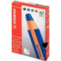 Etui de 4 crayons de couleur Woody assortis. Crayon 3 en 1 à la fois crayon de couleur, craie grasse et aquarelle. Son corps large et léger est parfaitement adapté aux petites mains. Sa mine grasse extra tendre et très pigmentée permet de dessiner et écrire sur une multitude de surfaces, telles que le bois, le verre, le plastique, le carton ou encore une ardoise, un tableau noir ou blanc. Sa mine aquarellable se dilue avec un pinceau et de l’eau. Longueur 11 cm, diamètre mine 10 cm, diamètre crayon 15 mm. Corps rond.