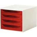 Module 4 tiroirs Ecobox de couleur gris et framboise