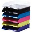 Corbeille courrier ecoline violet. Très agréable à utiliser au quotidien grâce à sa prise de main large et profonde qui permet de saisir facilement les documents et facilite le passage de main entre 2 corbeilles superposées. Elle accepte jusqu''au format 24x32 cm et les pochettes à élastique. Capacité : 500 feuilles Polystyrène 100% recyclable