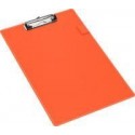 Plaque porte bloc en plastique A4+ orange. En carton, revêtement PVC. Pince métal avec plastique aux angles, porte stylo, œillet de suspension rabattable. Dimensions : 35.5x23.5cm, pour format A4.