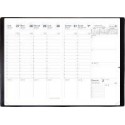 Agenda semainier de septembre à décembre planing noir. Format : 18 x 24 cm. 16 mois de septembre à décembre . La semaine sur 2 pages à la verticale avec cases notes quotidiennes. 5 pages d''informations pratiques. Atlas couleur. Livré sans répertoire. Reliure cousue. Couverture amovible noire en plastique.