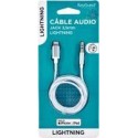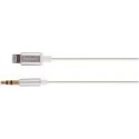 Câble Lightning vers jack mâle 1,20m blanc. 1 connecteur jack 3,5 mm mâle stéréo et 1 lightning. Permet de relier facilement votre iPhone ou iPad à une prise audio jack 3,5mm ou directement sur votre autoradio ou votre enceinte. Longueur 1,20m. Compatible avec tous les appareils Apple (certifié MFI). Garantie 3 ans.