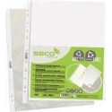 Sachet de 50 pochettes perforées en polypropylène recyclable 8/100ème. Polypropylène 8/100ème grainé, composé à 60% de matériaux recyclés. Les pochettes et leur emballage sont 100% recyclables. Même durée de vie qu’une pochette perforée PP classique. Pour format A4. Anti-transfert d''encre. Perforation 11 trous. Bande de perforation renforcée.