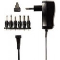 Adaptateur de 3 à 12 V - 0.6A. Alimentation plug-in universelle très compacte Livrée avec 6 connecteurs amovibles et un accessoire pour inverser la tension. Longueur du cordon: 1.8 m Courant de sortie: 0.6 A Puissance de sortie: 7.2 W Tension: AC 100 – 240V Couleur: Noir Fiche d''alimentation: Euro / Type C (CEE 7/16) Sélection manuelle de la tension de sortie:3 / 4.5 / 6 / 7.5 / 9 / 12 VDC Type de fiche de sortie: 2.5 mm ou 3.5 mm jack plug / 5.0 x 2.1 mm / 5.5 x 2.5 mm / 3.5 x 1.35 mm / 5.5 x 1.5 mm